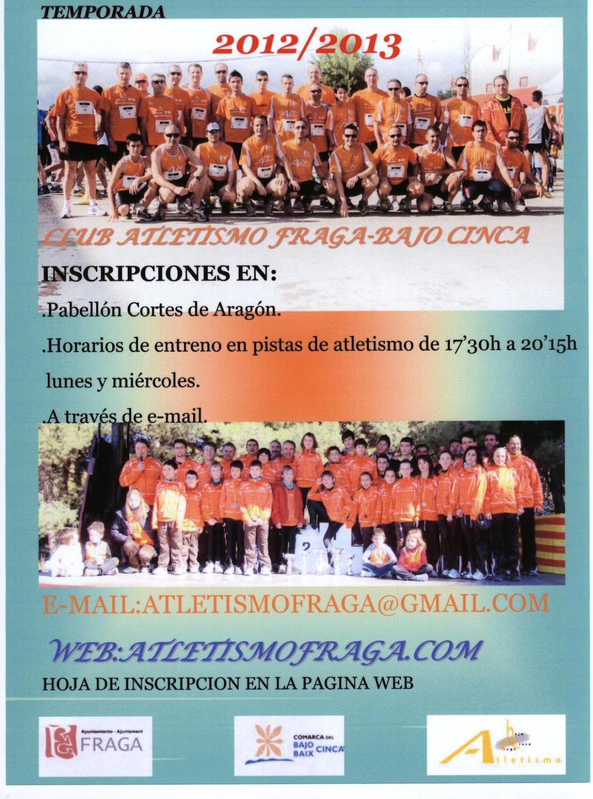 .Infantiles, cadetes y juveniles de 19’15h. a 20’30h. en pistas de atletismo.