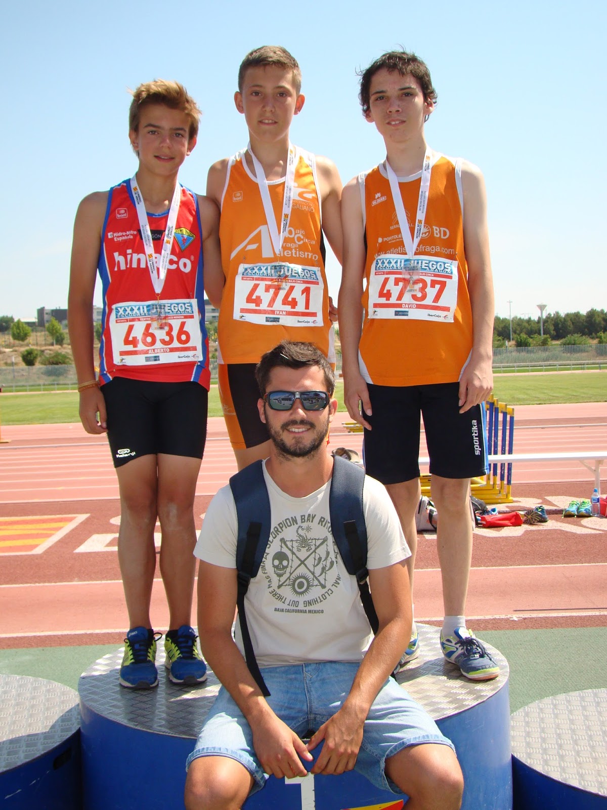 Después de competir bajo un sol sofocante, se trajeron para casa 3 medallas, 1 oro y 2 bronces. Oro para Iván Segurado en salto de longitud con una mejor marca personal de 4,74. Bronces para Noemí García en 1000 m.l. con un tiempo de 3’22». También bronce para David Mir en salto de longitud, que ha tenido una progresión muy buena durante toda la temporada.