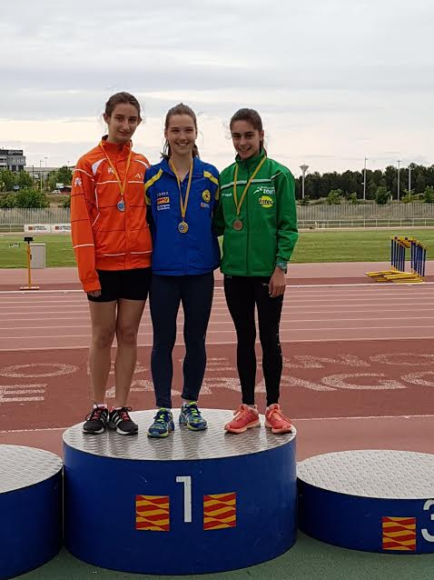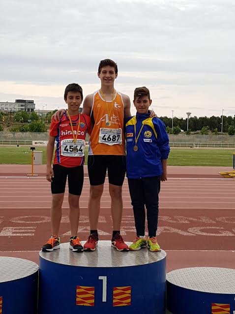 La tercera de las pruebas que contabilizaba era el lanzamiento de disco de 800gr. Fueron tres lanzamientos muy largos todos ellos y en el primero se produjo además la segunda marca personal de Javi con una distancia de 37 metros y 20 centímetros. Sumando los puntos obtenidos Javi consiguió un total de 1738 puntos, casi 400 puntos más que los que tenía como marca de la temporada. Todos esto le valió para adjudicarse el campeonato de Aragón. Pero las alegrías no terminan ahí. Elena Guiu por su parte también logro un excelente subcampeonato de Aragón.